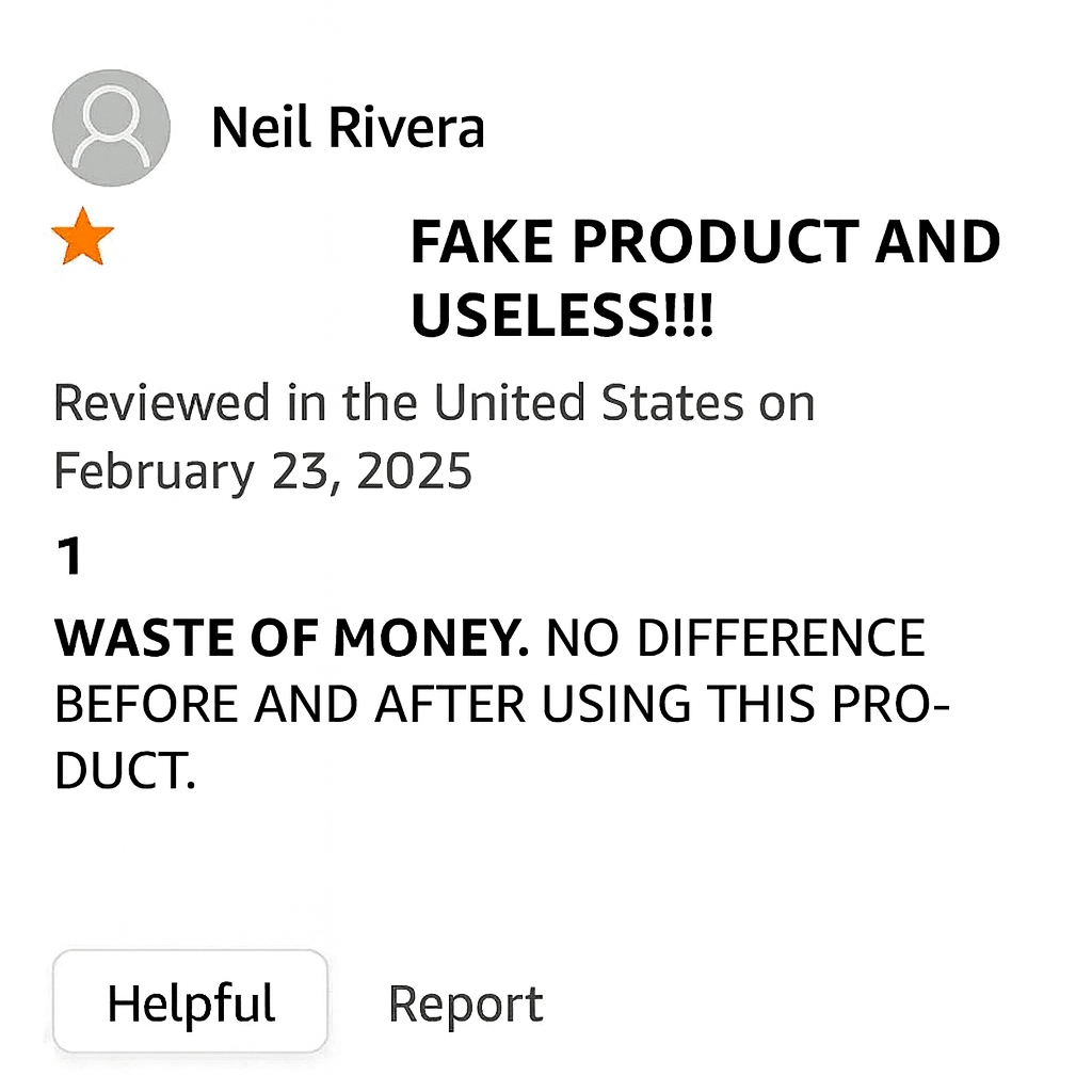 Our team uncovered numerous alarming complaints from individuals who ordered what they believed to be VigorLong™ through third-party websites like Amazon, eBay, or even Walmart. These customers reported receiving counterfeit bottles with altered or completely different ingredients — products that were not only ineffective but also carried potential health risks.